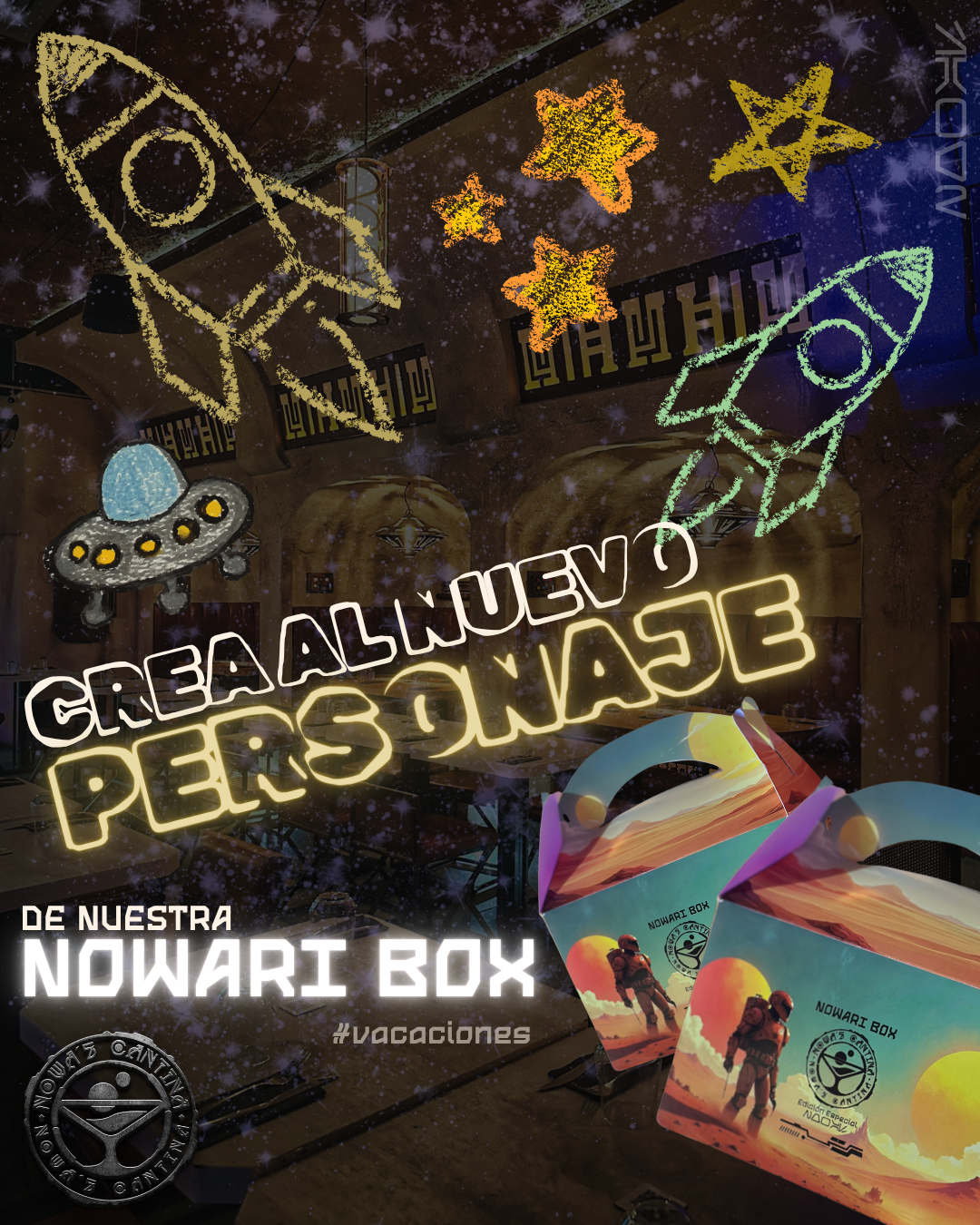 Del 24 de junio al 14 de julio, los pequeños visitantes serán protagonistas de una aventura creativa única: el concurso para crear al nuevo personaje de la icónica “Nowari Box”, la caja de menú infantil que es todo un tesoro para los fans del lugar. Niñas y niños podrán dibujar su propuesta durante la visita, y el diseño más original será elegido por el equipo creativo de Nowa’s para transformarse en el próximo personaje oficial.