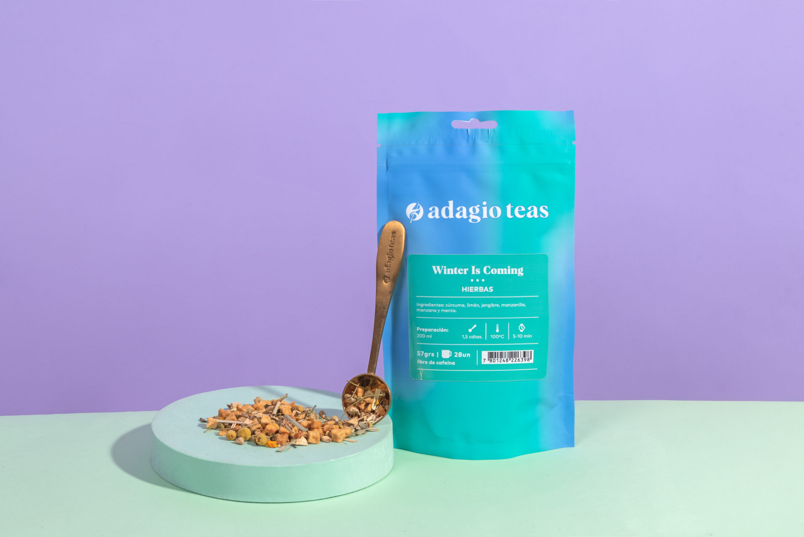 Winter is coming: Una infusión poderosa para esta temporada, es antioxidante, relajante y depurativa, una mezcla natural que ayuda a reducir el estrés, aliviar la ansiedad y desintoxicar el cuerpo de forma suave y efectiva. Elaborada con cúrcuma, lemongrass, jengibre, manzanilla, menta y manzana.
