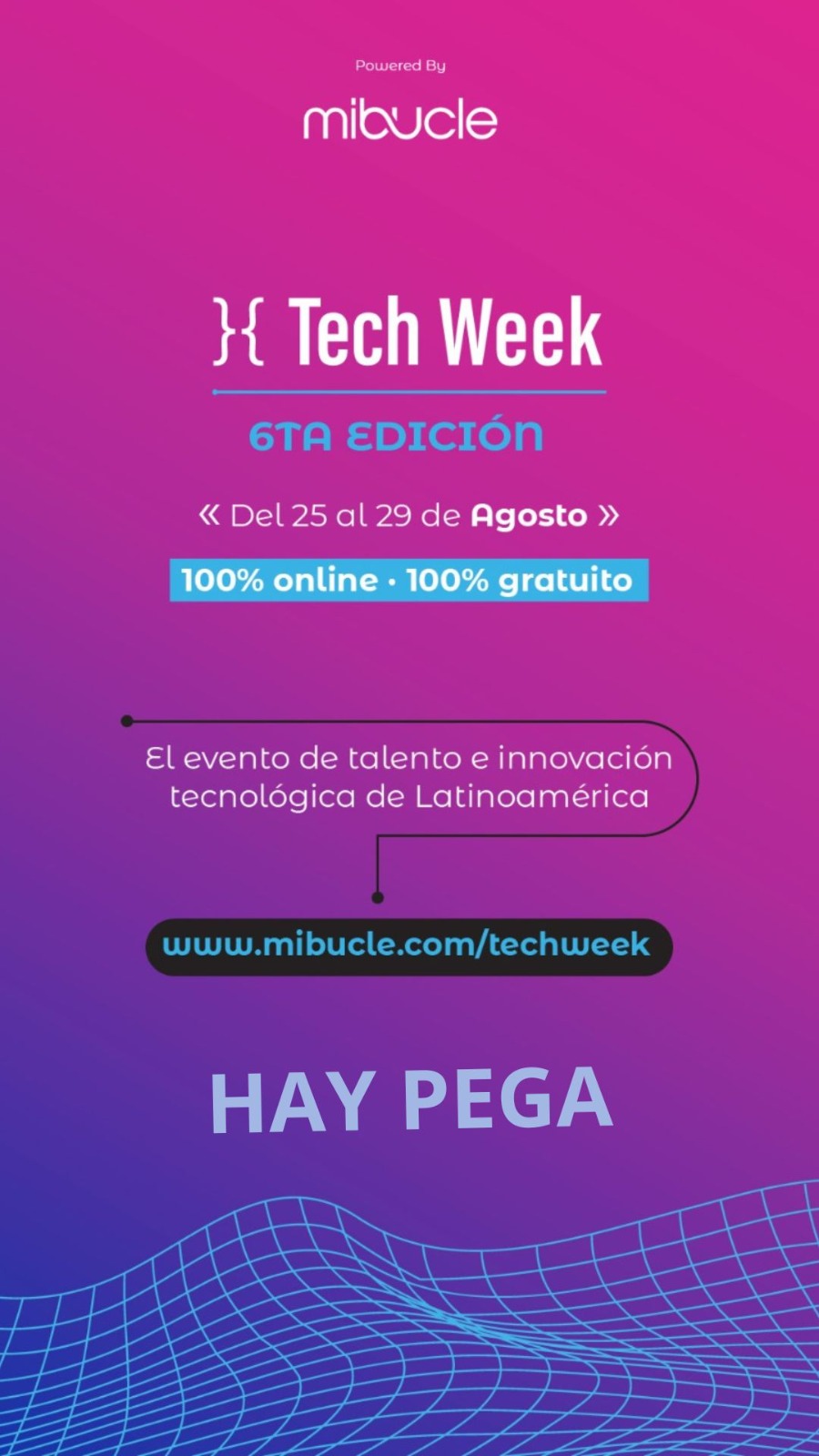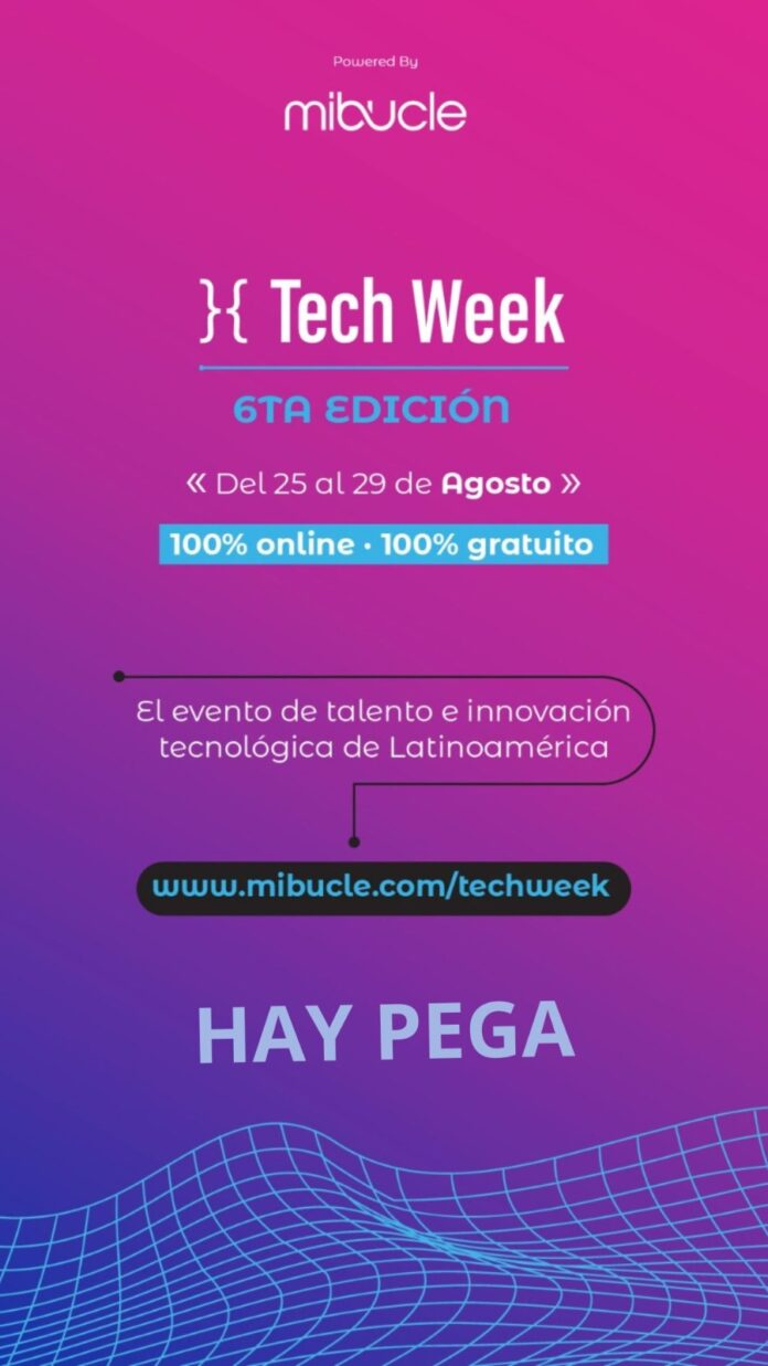“Ademas hay cientos de stands virtuales, y charlas en vivo con referentes del ecosistema tech y fintech” “Además profesionales que quieran dar un impulso a su carrera o reconvertir su profesión también es una importante alternativa incribiendose en www.mibucle.com/techweek”. que es el portal habilitado y con capacidad para reunir profesionales y empresas de la región” para participar”.