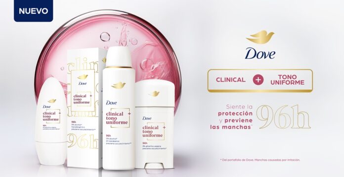 Este movimiento abre paso a los productos híbridos, aquellos que combinan protección con beneficios de skincare. Dentro de esta nueva categoría destaca Dove Clinical Tono Uniforme, un antitranspirante de eficacia clínica que protege hasta por 96 horas contra sudor y olor, pero que además suma propiedades propias del cuidado de la piel: fórmula hipoalergénica de base acuosa y 3% de glicerina vegana, que hidrata en profundidad, ayuda a reducir la irritación y previene el tono desigual.