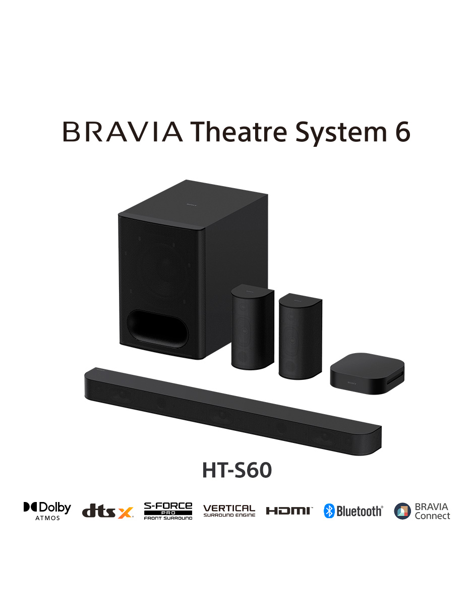 BRAVIA Theatre System 6 es un sistema de sonido todo en uno de 5.1ch y 1000 W de potencia con subwoofer que ofrece sonido más profundo e intenso, y bien balanceado. La configuración del altavoz de 5.1ch aporta profundidad, claridad y potencia al sonido, mientras que la compatibilidad con los formatos Dolby Atmos y DTS:X permite disfrutar de paisajes sonoros multidimensionales e inmersivos.