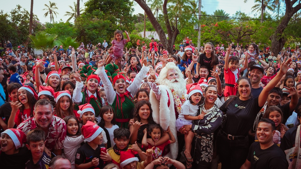 Para finalizar el recorrido, el Viejito Pascuero, acompañado de sus duendes, realizó una visita histórica a Rapa Nui para vivir el espíritu navideño. Del encuentro navideño participó la alcaldesa de Rapa Nui, Elizabeth Arévalo, y congregó a más de mil personas en el corazón de la isla.