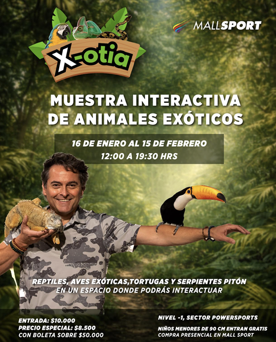 Durante estas vacaciones de verano, Mall Sport suma a su programación un panorama diferente para toda la familia. Se trata de X-OTIA, una experiencia interactiva que propone una inmersión educativa en el mundo de los animales exóticos, pensada para disfrutar en familia y aprender de forma cercana y entretenida.